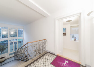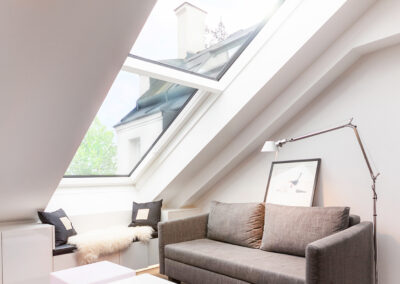 Das bürgerliche Vorstadthaus in der Wiener Grinzingerstraße beherbergte einst Albert Einstein, wenn er in Wien zu Gast war. Als Hommage an den großen Bewohner findet sich eine kleine Skulptur in einer beleuchteten Nische. Zwei Appartements wurden umgebaut und komplett neu adaptiert, um den Zeitgeist heutiger Wien-Besucher zu treffen.