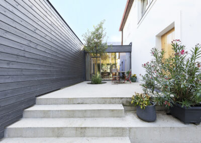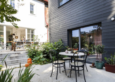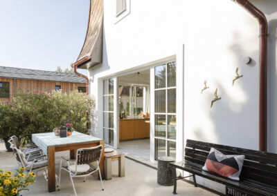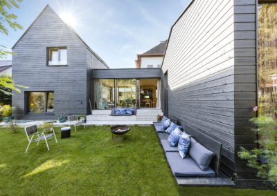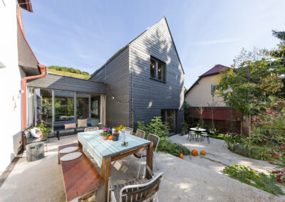 Ein „Familiencampus“ aus mehreren modernen Zubauten entstand hier rund um das alte Bestandsgebäude – Platz genug für eine quirlige Familie mit vier Kindern.