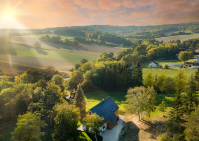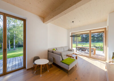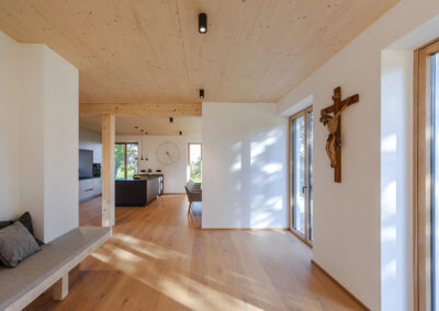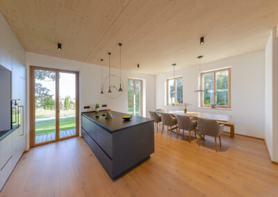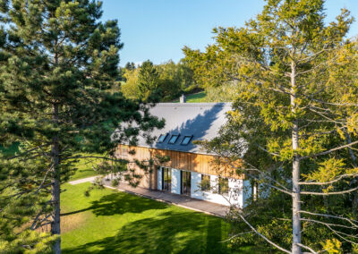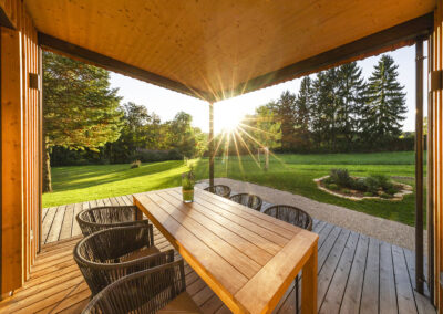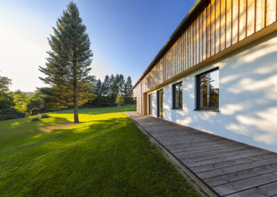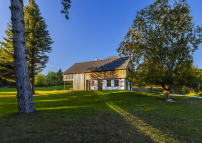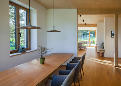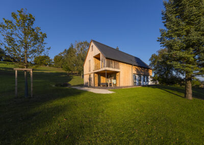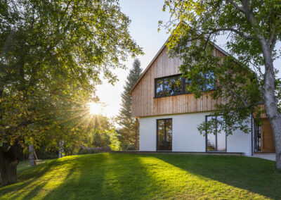 Eine sehr gelungene Kombination aus offener, moderner Wohnatmosphäre und der Behaglichkeit von heimeligem Holz wurde auf einem ausgedehnten Traum-Grudstück in der sanft gewellten Landschaft des Weinviertels realisiert.