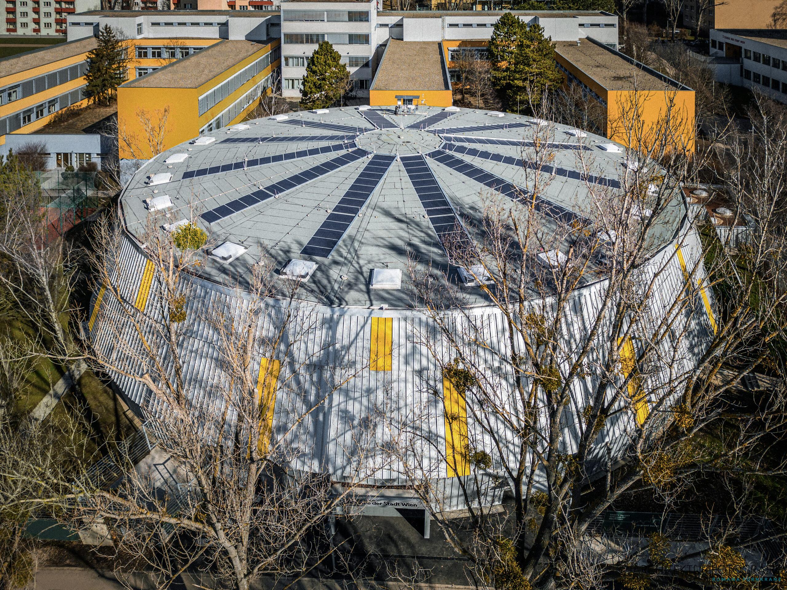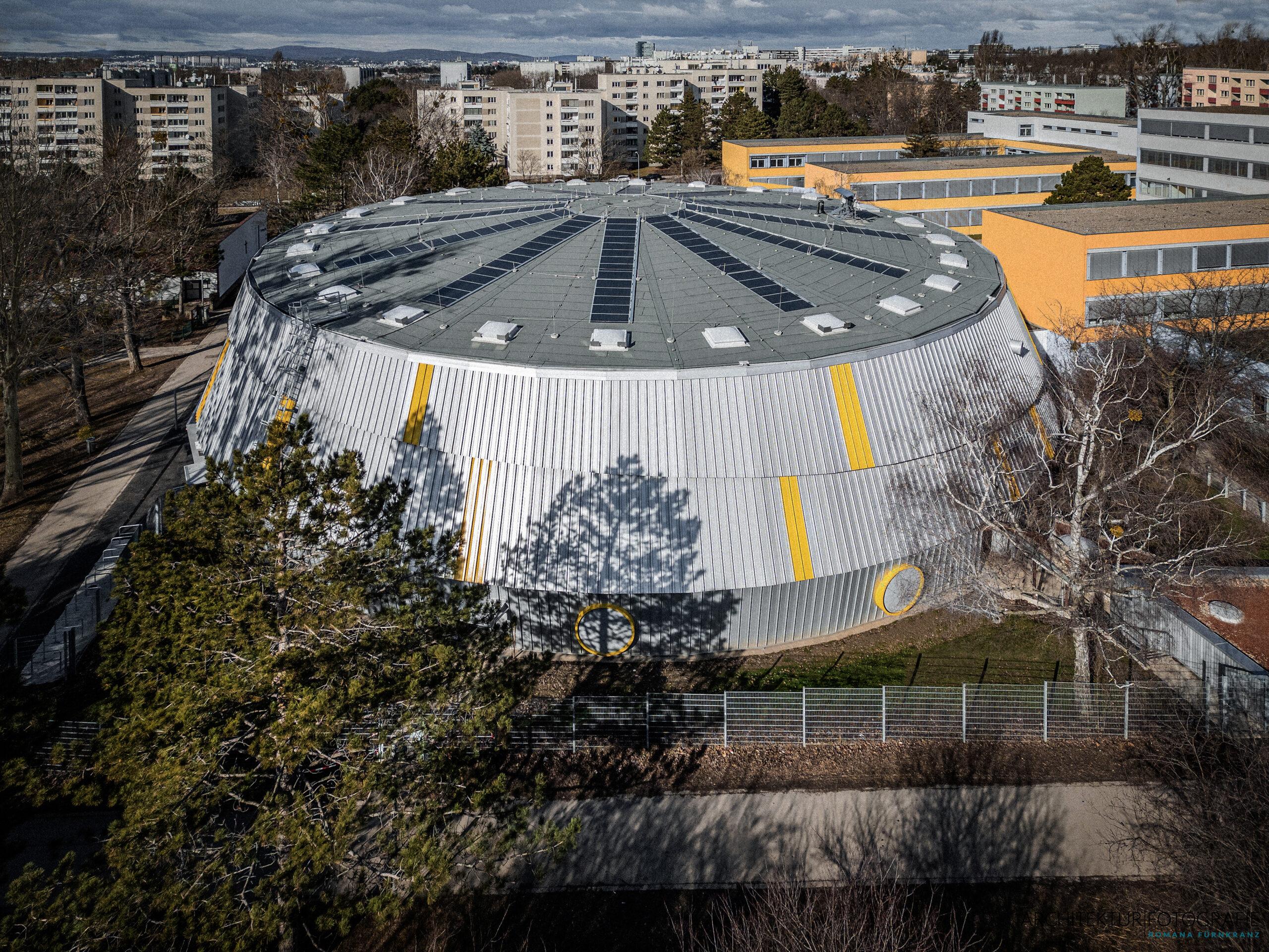 JURA – die vierte generalsanierte Rundturnhalle Wiens, die ich fotografiert habe, wurde auch mit Drohnenfotos dokumentiert.